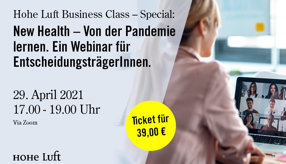 New Health – Von der Pandemie lernen. Hohe Luft Business Class SPECIAL. Ein Webinar für EntscheidungsträgerInnen